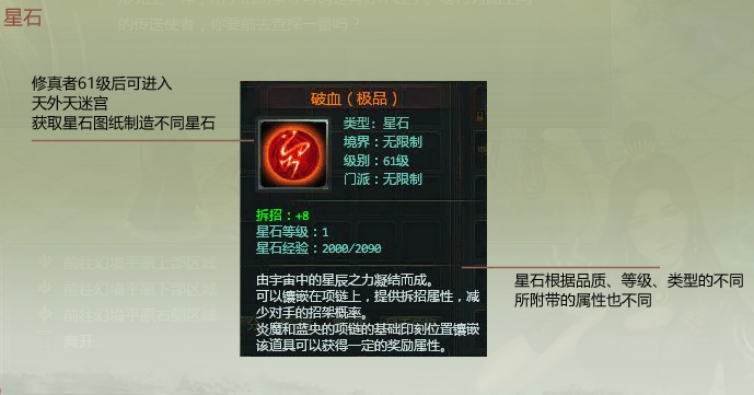 每条灵脉都有一条基础属性与扩展属性,灵脉修行到一定程度可开启扩展属性。