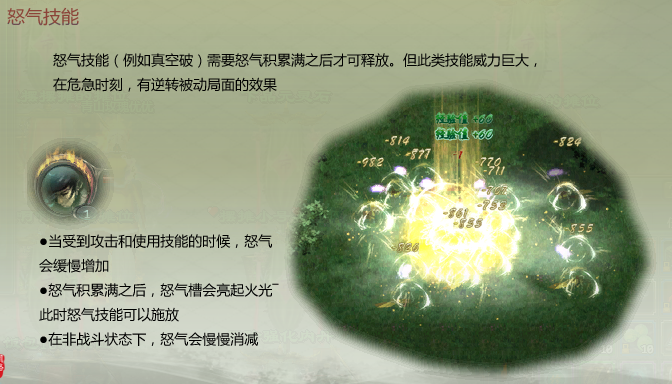 怒气:怒气会在角色受到攻击时增加,累积到一定程度可使用特殊的怒气技能。