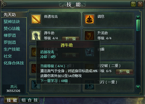 气:赤阳、血魔使用技能需要消耗,无法随等级成长,但可自动快速恢复。