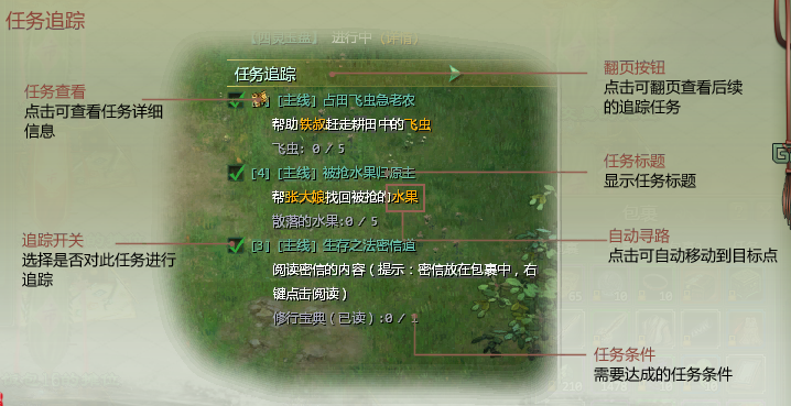 学习采集技能后,只要左键点击地面上的药材和矿物资源,就可进行采集。