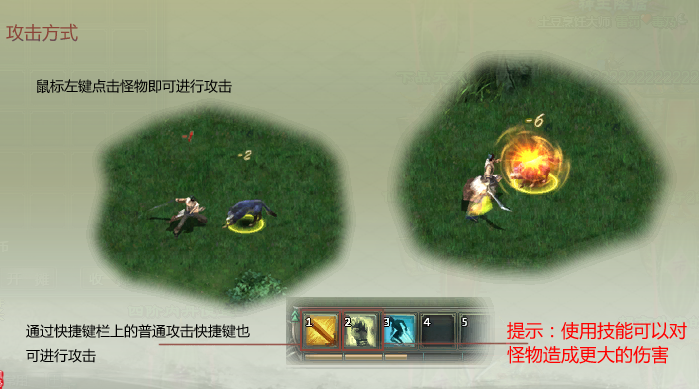 通过快捷栏上的普通攻击快捷键也可进行攻击。